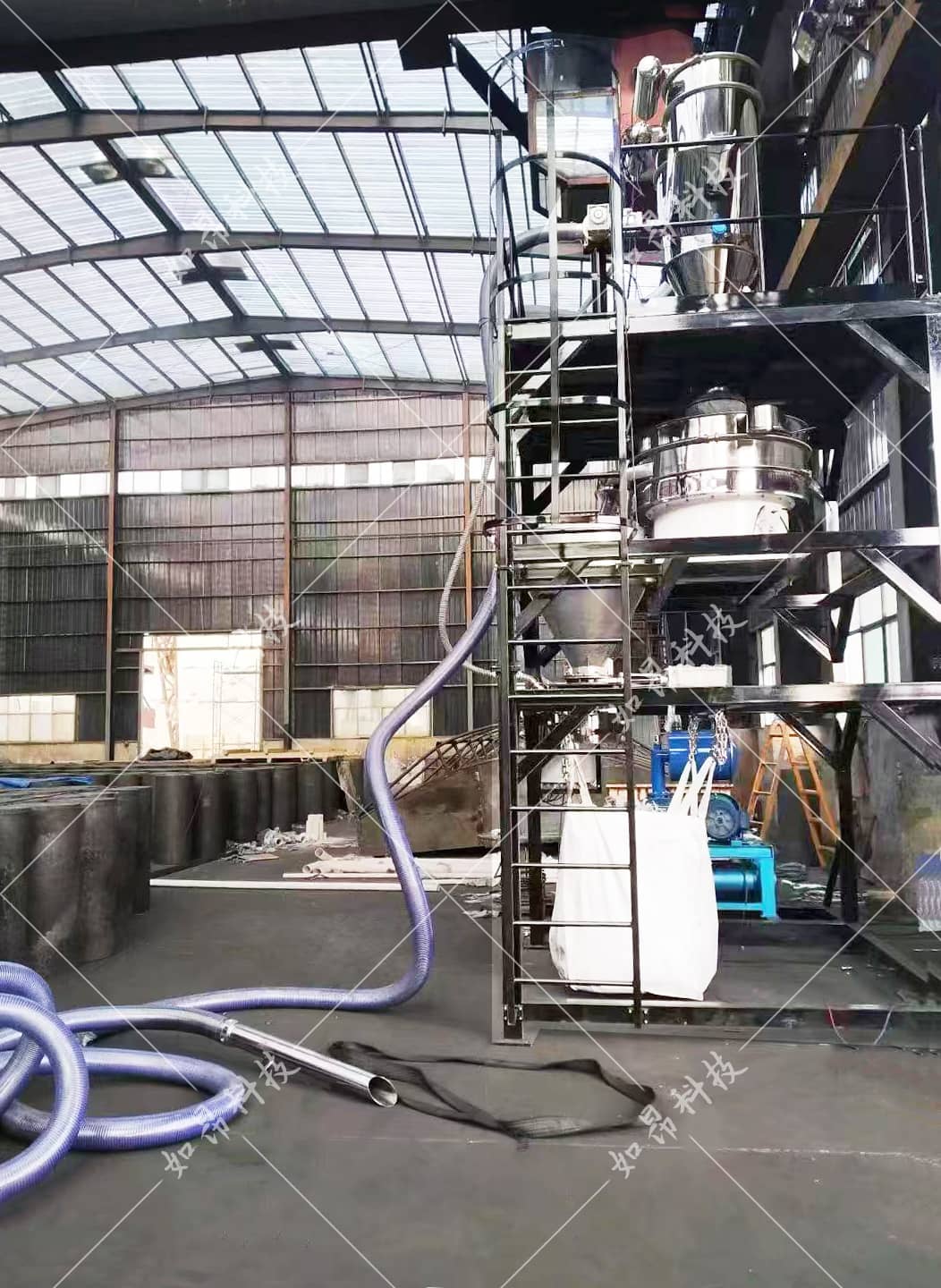 失重稱單元- ---稱重料斗---稱重傳感器---給料裝置--大袋包裝機-- 輸送裝置--- PLC控制系統: